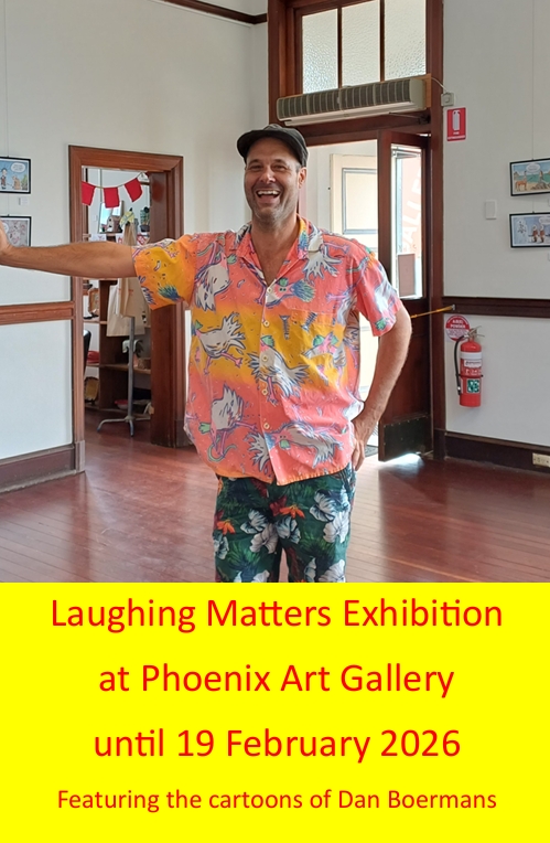 Local artist Dan Boermans has created a unique display of 30 of his cartoons designed to make you giggle. Grab a coffee from the beautiful Phoenix Coffee shop while you are there.