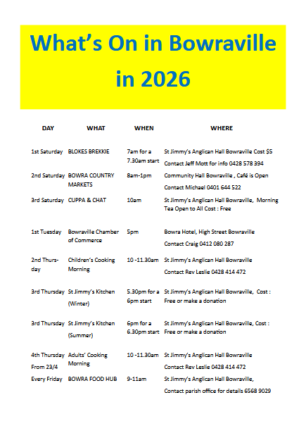 Ask About our Boldly Bowra 2449 T shirts - from $20 at the BTC in High Street, Bowraville.